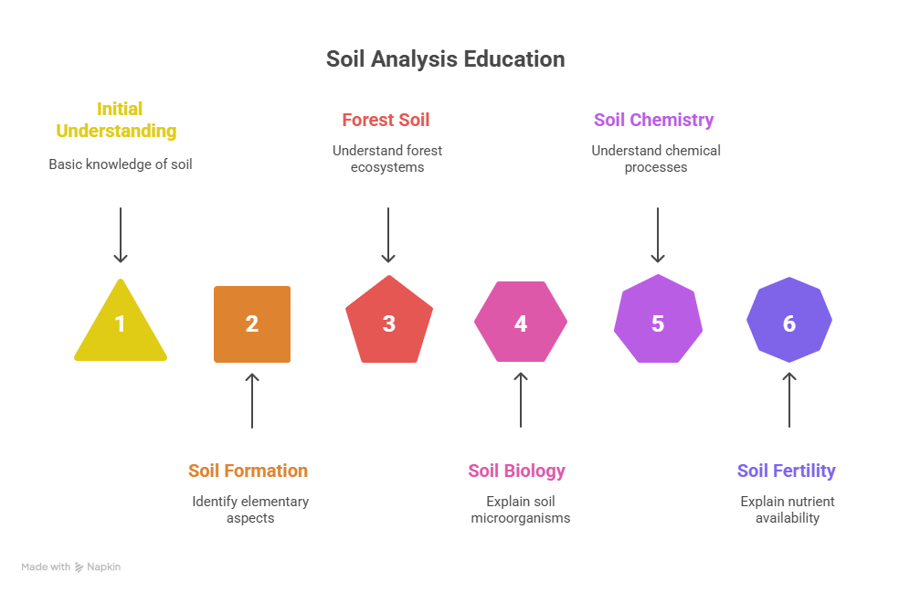 This module aims to equip students with essential knowledge, skills, and attitudes of soil analysis. The emphasis will focus on identify elementary aspects of soil formation process, forest soil and forest
