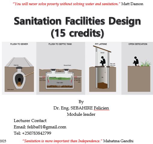 This module describes the skills, knowledge, and attitude required to design sanitation facilities. At the end of this module, the students will be able to design solid waste facilities, wastewater treatment plants, sewer networks, and faecal sludge treatment plants.