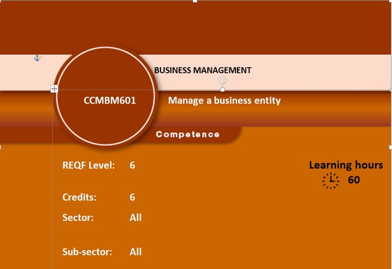 This module is intended for a learner in Level 6, TVET Diploma, where learner acquires skills, knowledge and attitudes required to Manage a business entity. The module will help the learner to be able to manage Business development, Manage business finance, Perform human resource management as well as Manage marketing operations.