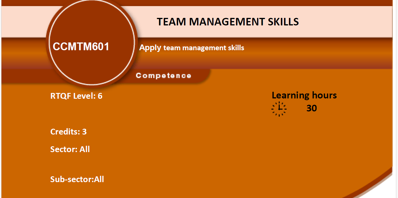 This module describes the skills, knowledge and attitudes required to manage a team. Upon completion of this module, the trainee will be able to apply professional communication skills including describing clearly the basics of communication, delivering effectively a speech, performing properly interview and writing properly business letters, reports and memos. Furthermore, the trainee will be able to apply team leading skills including managing effectively employees, resolving appropriately workplace problems and giving effectively instructions and feedback. Finally, the trainee will be able to manage meeting by acquiring the skills in preparing, conducting, debriefing and following up a meeting.