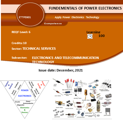 This module describes the skills, knowledge and attitudes required to illustrate power semiconductor devices, apply power conversion techniques and recognize the application of power converters in electrical power systems. The main focus will be placed on the comprehension of the elementary power conversion structures, their operating principles, and waveform analysis. It is designed for trainees pursuing Diploma in Electronics and telecommunications Technology.